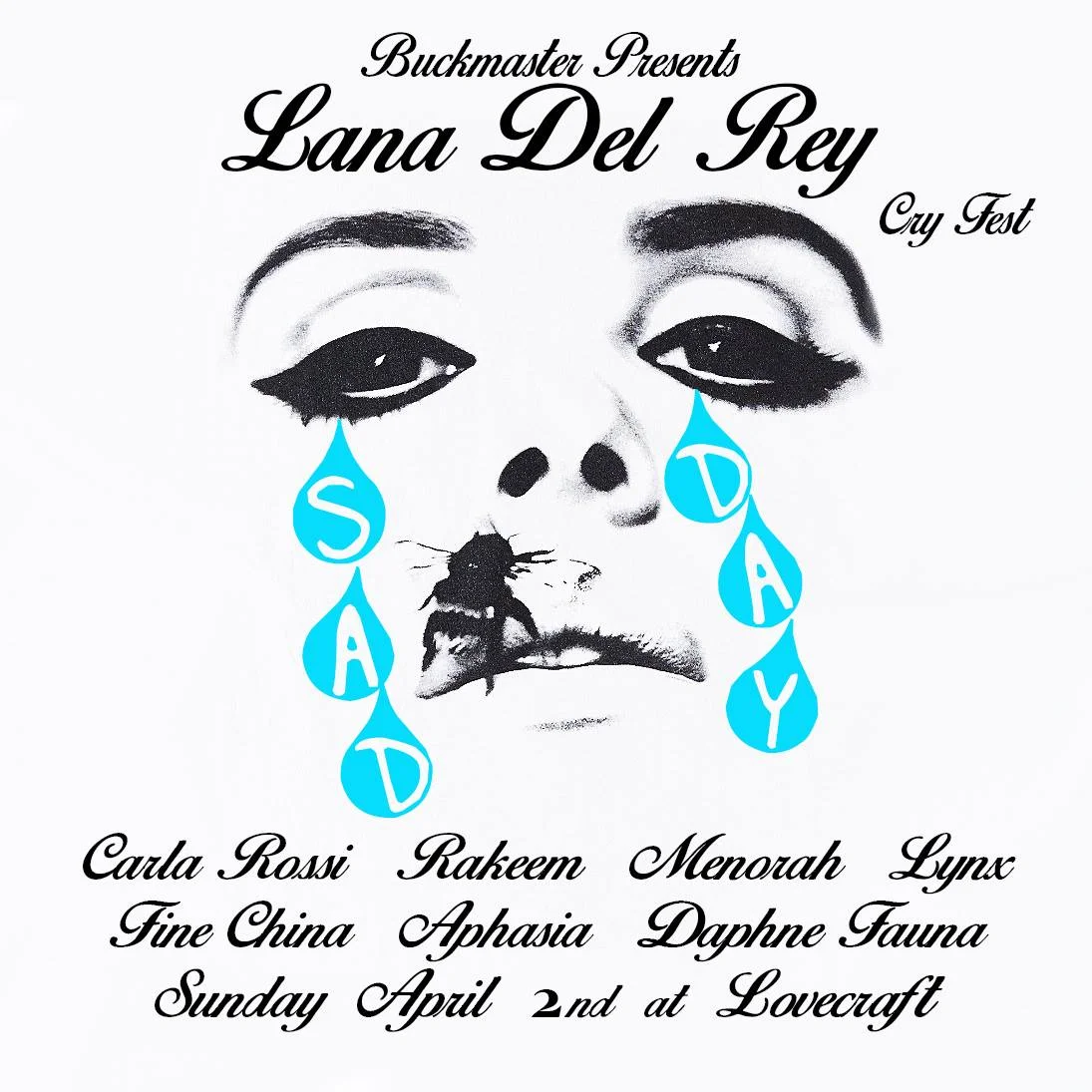 Join resident Sad Boi - RAKEEM and resident Sad Girl Menorah, along with Carla Rossi, Daphne Fauna, Fine China, Lynx, and Aphasia as they pay dishonor to Del Rey.